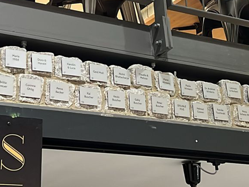 Jeder Pate erhielt für 15 Euro einen Stein mit persönlicher Namensplakette. Die individuell beschrifteten Pflastersteine wurden in den Nischen der Stahlträger verbaut, die Namen der Patinnen und Paten sind somit nun sichtbarer Teil der Markthalle.